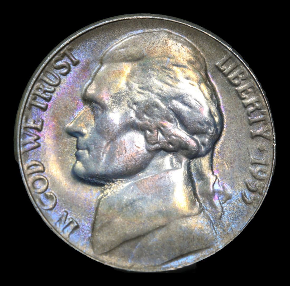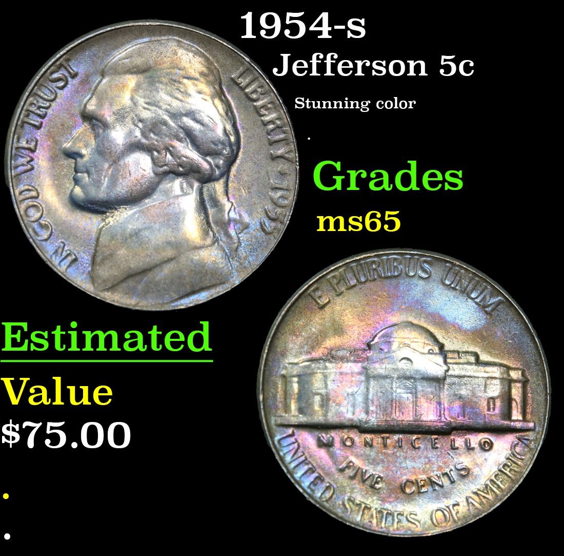 1954-s Stunning color . Jefferson Nickel 5c Grades GEM Unc.