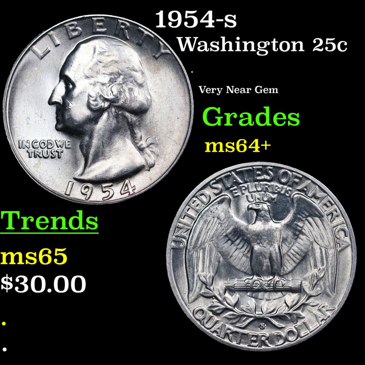 1954-s Washington Quarter 25c Grades Choice+ Unc.