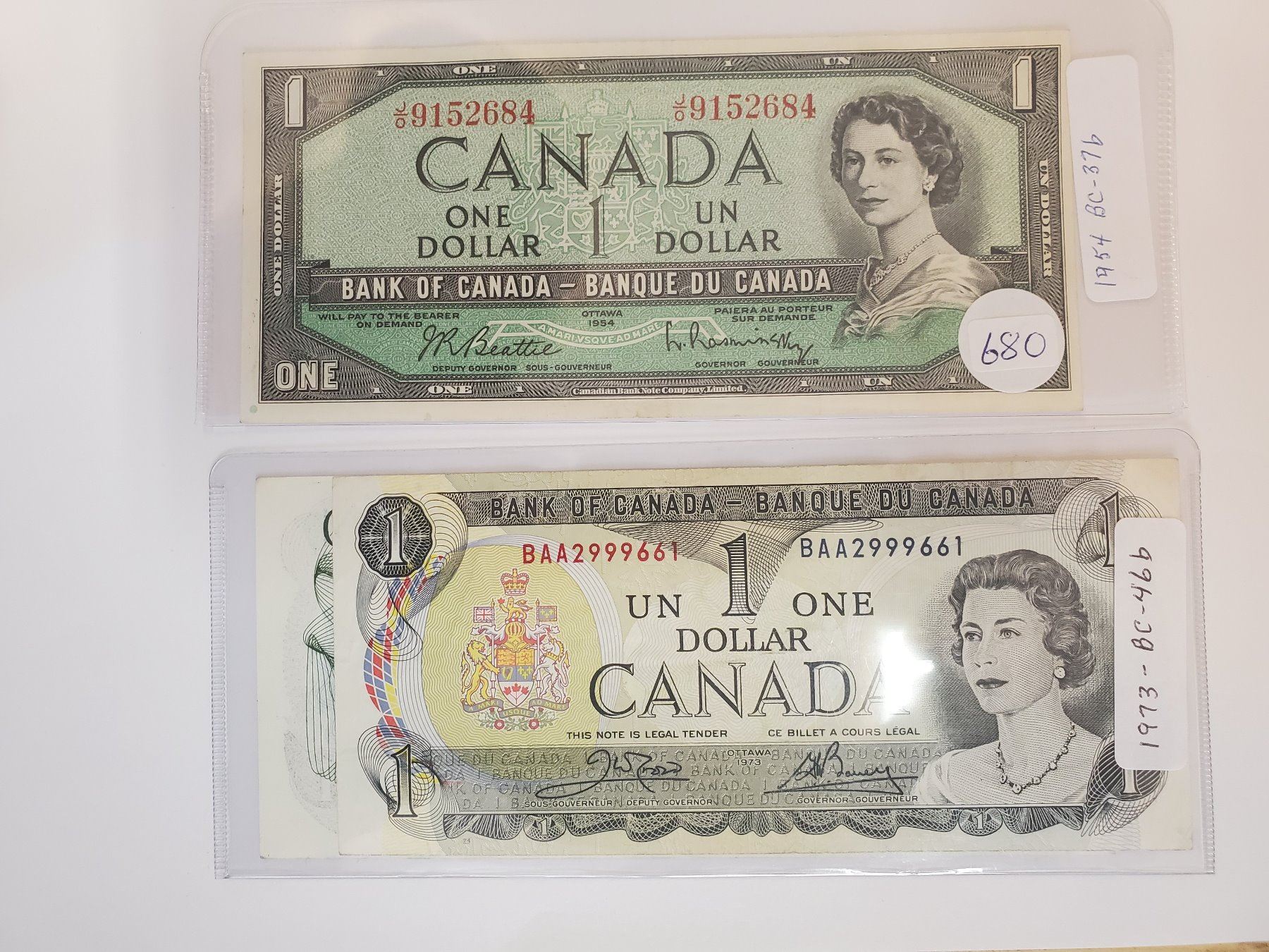 1954M ONE DOLLAR BILL & TWO 1973 DOLLAR BILLS