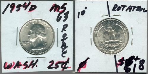 1954d Silver Wash. Quarter. MS-63. 10* rotated right.
