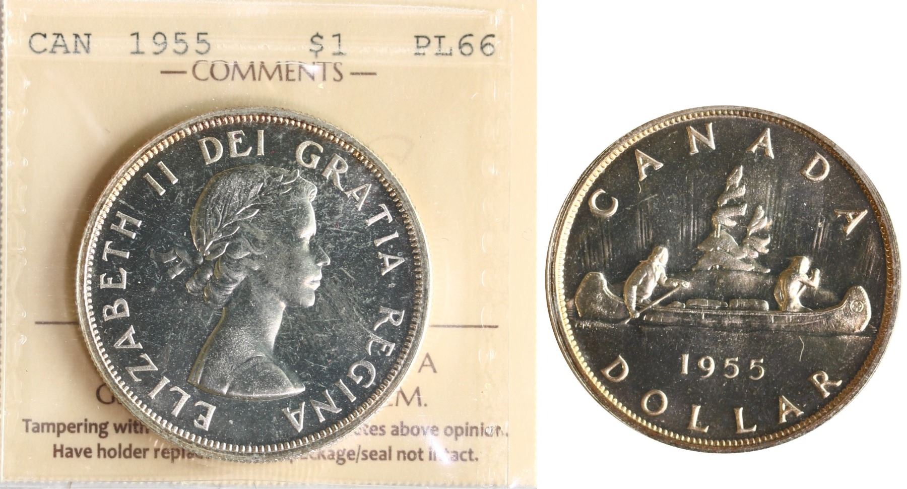 1955 $1 "Arnprior" ICCS Superb Gem Proof-Like-66 Fully brilliant with great reflective surfaces.