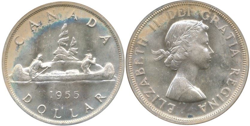1955 $1 Arnprior NGC MS64. Should be designated as Die Crack.