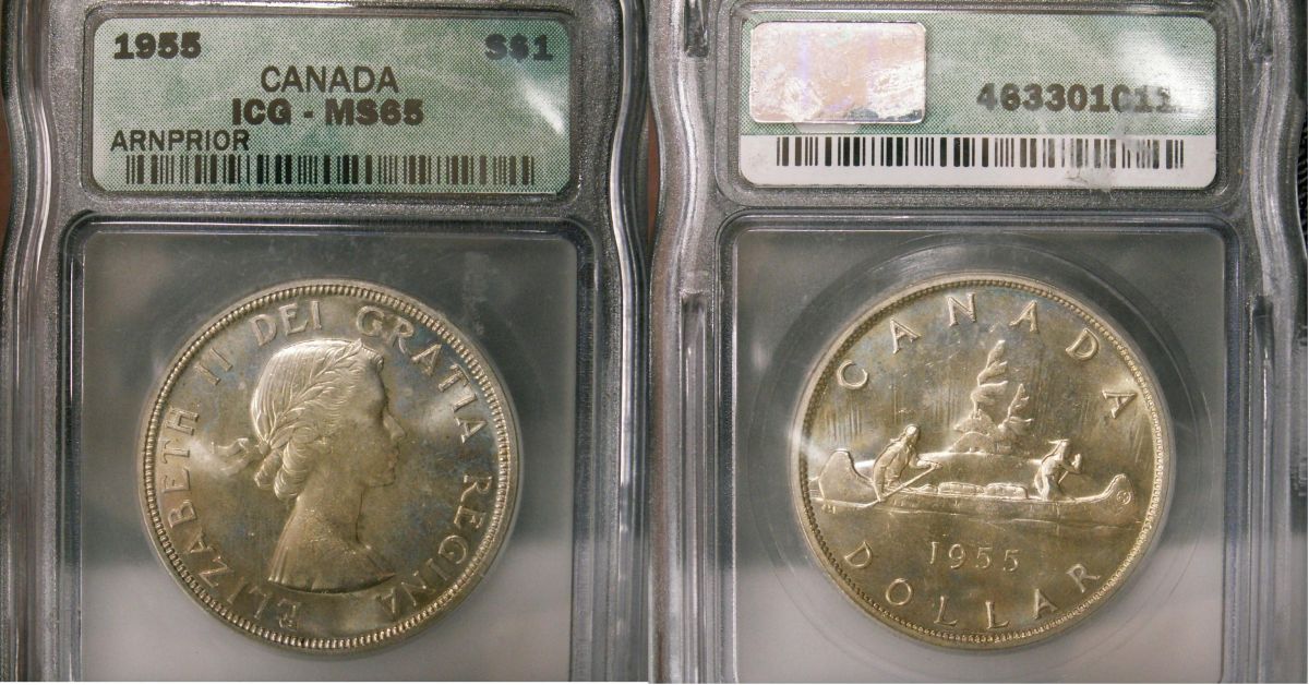 1955 $1 Arnprior w/die crack ICG MS65. Sharp lustrous example.