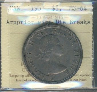 1955 $1 ICCS MS-64, Arnprior With Die Breaks.