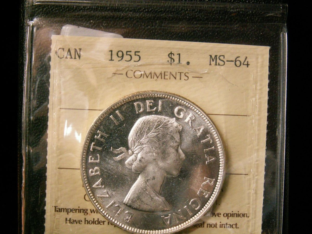 1955 $1 ICCS MS64 Cameo. Mostly white.