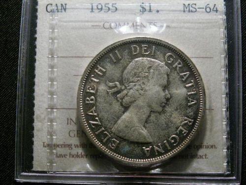 1955 $1 ICCS MS64PQ. Light gold and russet tones. Near "Gem".