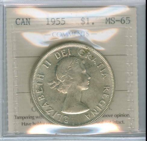 1955 $1 ICCS MS65. Another lustrous white example with lots of lustre.