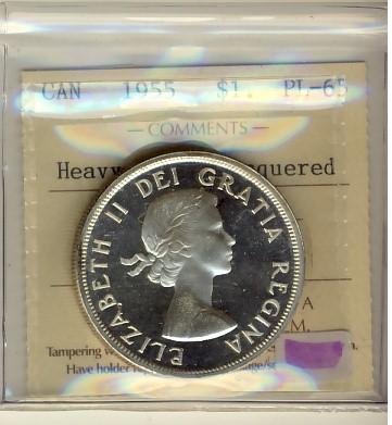 1955 $1 ICCS PL65 Heavy Cameo. Lacquered.