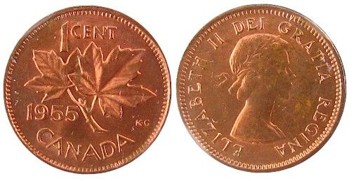 1955 1¢ NSF ICCS MS64RD. Attractice 90% red and lustrous. Tough grade for type. Rarely offered.