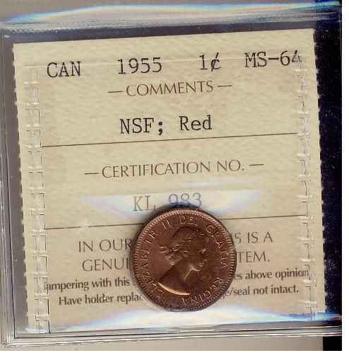1955 1¢ NSF ICCS MS64RD. Key issue with none graded higher.