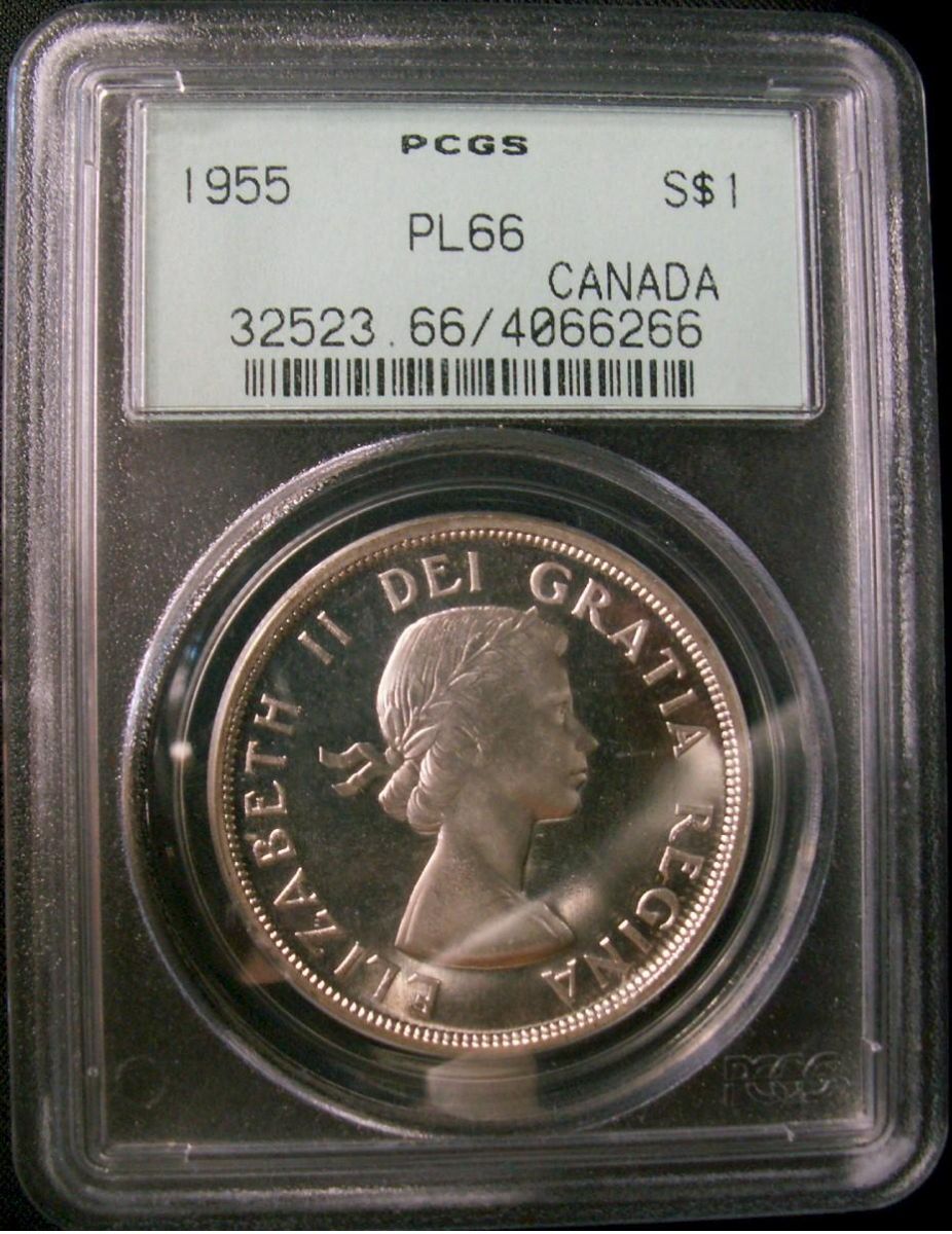 1955 $1 PCGS PL66. Gem example with Cameo finish.