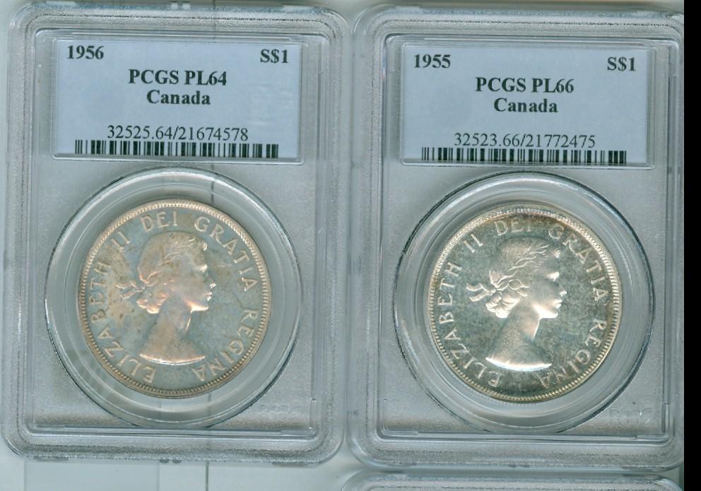 1955 $1 PL66 & 1956 PL64. Lot of two coins both PCGS graded, white and light cameo.