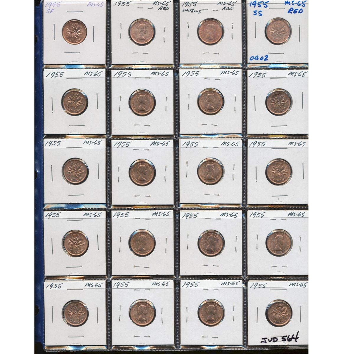 1955 1¢ Roll+; includes 107 pieces all in 2x2's. Includes approx 80 pcs M63RD to MS64RD & 27 pcs UNC RB to Brown. A nice lot that should be viewed.
