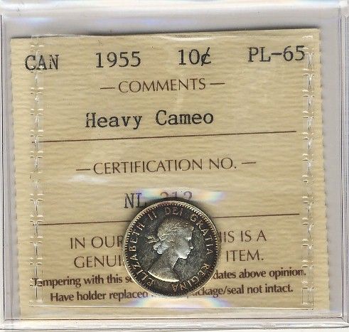 1955 10¢ ICCS PL65 Heavy Cameo.