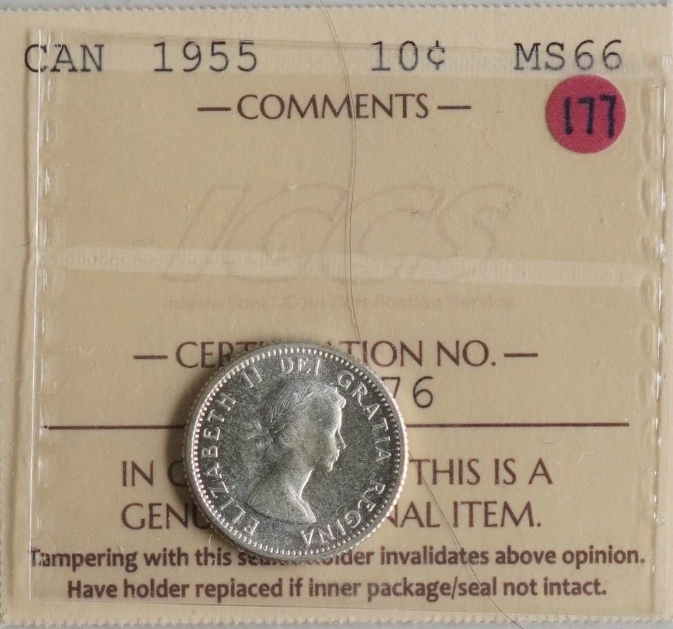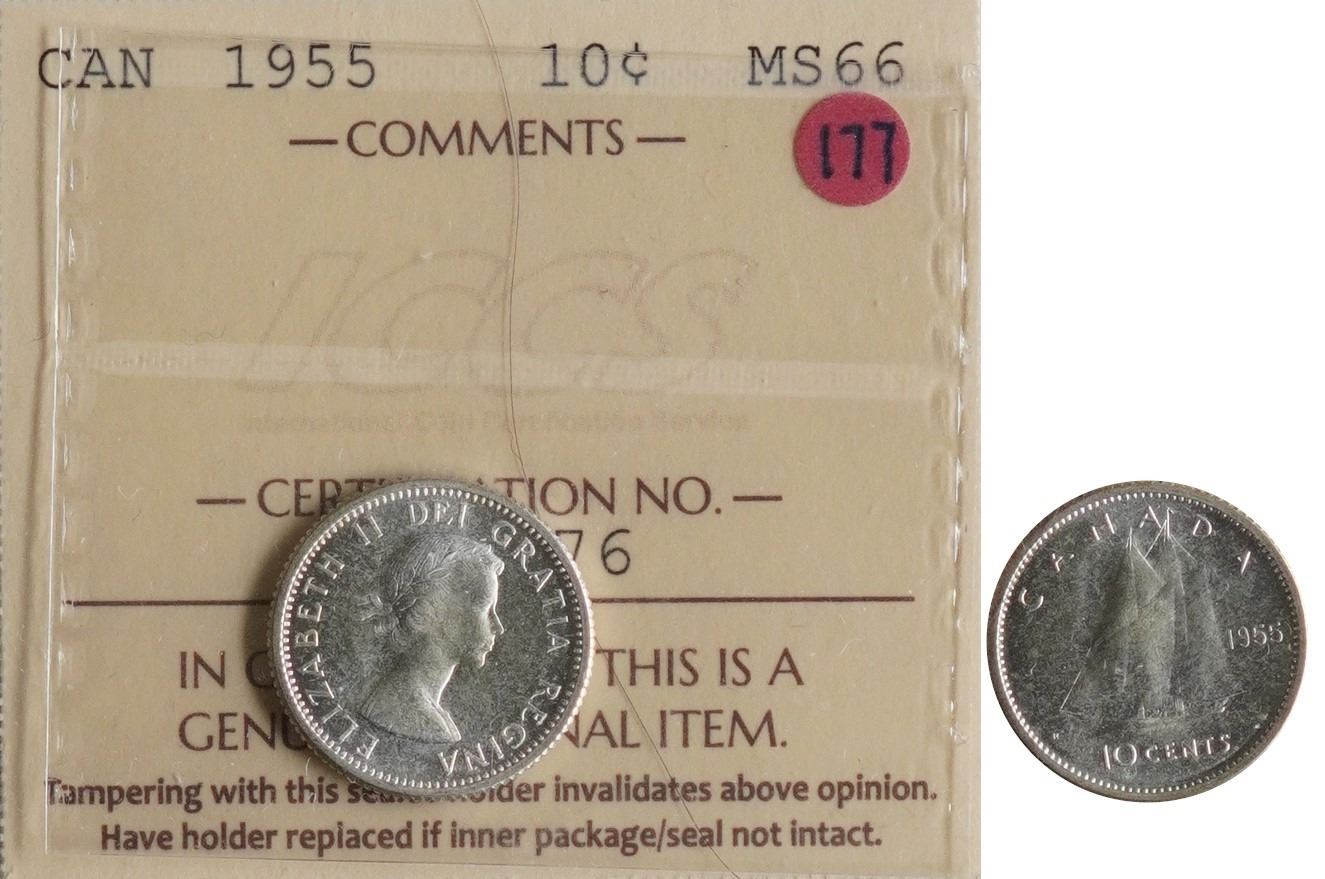 1955 10¢ ICCS Superb Gem Mint State-66. Fully lustrous Gem issue.