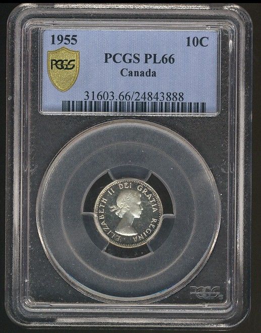 1955 10¢ PCGS PL66. Should be designated Heavy Cameo.