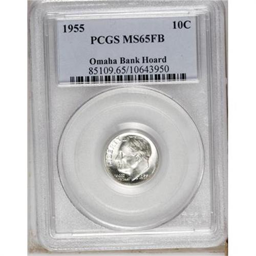 1955 10C MS65 Full Bands PCGS. Ex: Omaha Bank Hoar