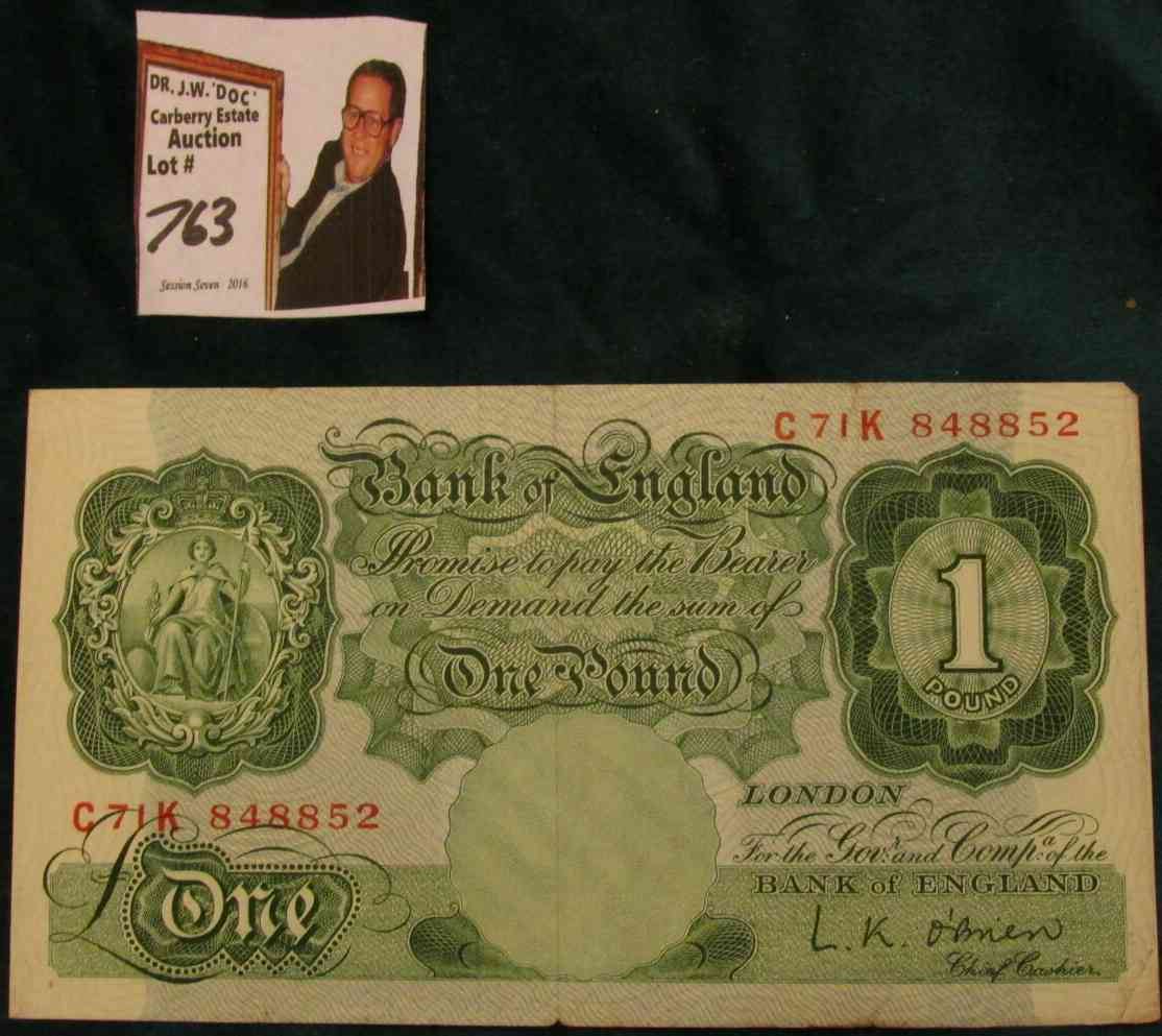 (1955-1960) Bank of England One Pound Note, Fine. Signed L.K. O'Brien. Pick # 127c.