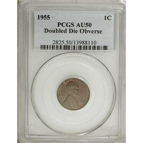 <B>1955 1C Doubled Die Obverse AU50 PCGS.</B></I> FS-101, formerly FS-021.8. A briefly circulated example that displays this variety's famously bold obverse doubling. Well struck with chocolate-brown surfaces that show subtle plum and peach accents.<BR><BR><B>Coin Engraver:</B> Victor D. Brenner<BR><BR><b>Shipping:</b> Coins & Currency (<a target="_blank" href="http://www.heritageauctions.com/common/shipping.php">view shipping information</a>)