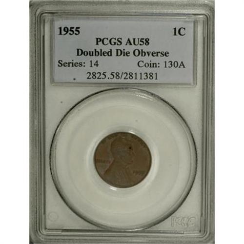 <B>1955 1C Doubled Die Obverse AU58 PCGS.</B></I> FS-101, formerly FS-021.8. Glimpses of faded mint red emerge from the chocolate-brown, steel-blue, and lilac fields. The cheekbone and the hair above the ear show only slight wear. A famous and dramatic doubled die variety.<BR><BR><B>Coin Engraver:</B> Victor D. Brenner<BR><BR><b>Shipping:</b> Coins & Currency (<a target="_blank" href="http://www.heritageauctions.com/common/shipping.php">view shipping information</a>)
