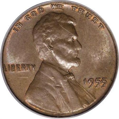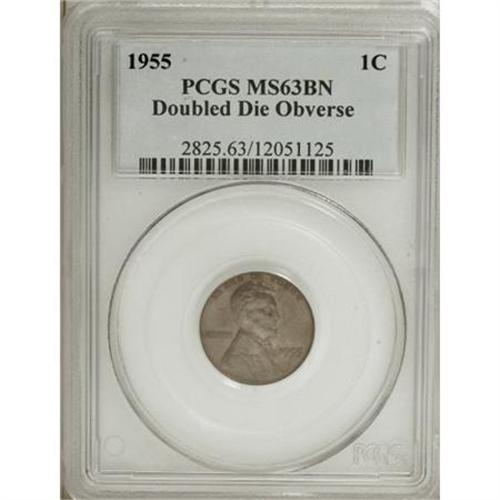 <B>1955 1C Doubled Die Obverse MS63 Brown PCGS.</B></I> FS-101, formerly FS-021.8. This spectacular doubled die representative exhibits a fair amount of mint-orange luster in the recesses of the obverse, and a little less so in those of the reverse. An attentive strike sharpens the design elements. Some minor flecks are noted on the reverse.<BR><BR><B>Coin Engraver:</B> Victor D. Brenner<BR><BR><b>Shipping:</b> Coins & Currency (<a target="_blank" href="http://www.heritageauctions.com/common/shipping.php">view shipping information</a>)