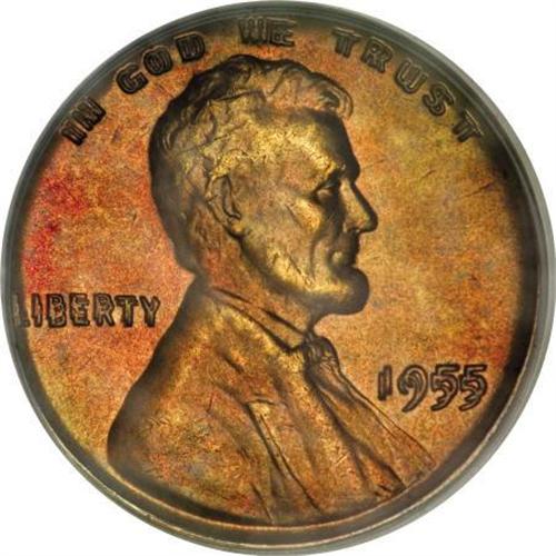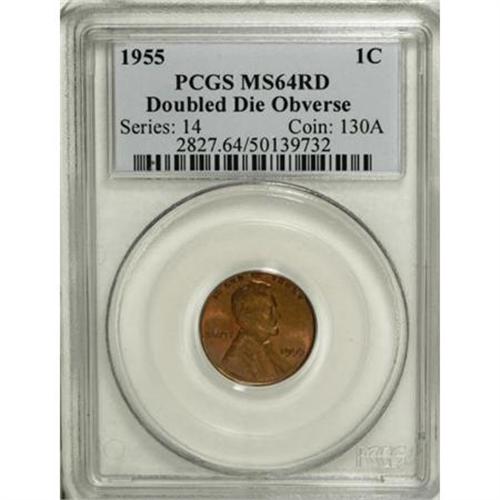 <B>1955 1C Doubled Die Obverse MS64 Red PCGS.</B></I> FS-021.8. Natural disasters of all kinds have affected the history of American money. The 1906 earthquake that devastated San Francisco but spared its Mint, for example, is a numismatic legend. In a roundabout fashion, a little-remembered hurricane had its own impact. Hurricane Diane made landfall in North Carolina in August 1955, but the flooding that resulted when it moved over New England had a more lasting impact. David Lange, in his <I>The Complete Guide to Lincoln Cents</B></I> (2005), recounts one state government's response to the storm, "the one-cent tax on cigarettes imposed by Pennsylvania as a temporary measure to pay for [the] damage."<BR> The added demand for cents strained the Philadelphia Mint, and the result was the spectacular doubled die that made the year famous. This well-defined example has a dusky rose-orange obverse and a paler copper-orange reverse. Pleasingly preserved and a visual delight. PCGS has certified 18 finer Red examples (11/07).<BR><I>From The New York Eye Appeal Collection, Part Three.</B></I><BR><BR><B>Coin Engraver:</B> Victor D. Brenner<BR><BR><b>Shipping:</b> Coins & Currency (<a target="_blank" href="http://www.heritageauctions.com/common/shipping.php">view shipping information</a>)