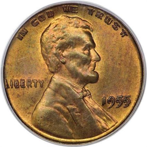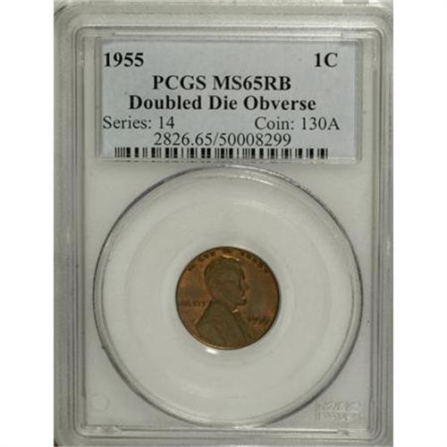 <B>1955 1C Doubled Die Obverse MS65 Red and Brown PCGS.</B></I> An aesthetically pleasing Gem, both sides display a smooth, softly frosted texture. The surfaces have survived the passage of time without acquiring any remotely mentionable carbon, and the surfaces are undisturbed aside from a thin line on the shoulder. As befits a representative of this prized 20th century error, the obverse doubling is readily evident to the naked eye, and, what's more, the lightly toned, olive tinted features retain plenty of vibrant golden-orange and lilac-red luster. A rare offering for the dedicated Cent collector. Population: 4 in 65 Red and Brown, none are certified by PCGS above the MS65 grade (11/07).<BR><I>From The Madison Collection.</B></I><BR><BR><B>Coin Engraver:</B> Victor D. Brenner<BR><BR><b>Shipping:</b> Coins & Currency (<a target="_blank" href="http://www.heritageauctions.com/common/shipping.php">view shipping information</a>)