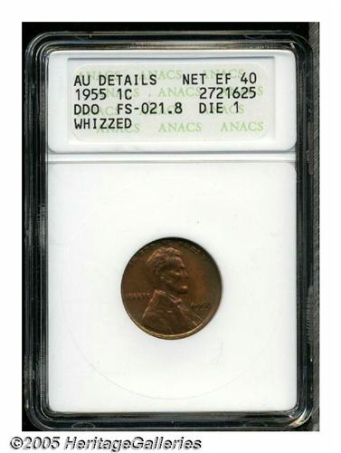 1955 1C Doubled Die--Whizzed--ANACS. AU Details,