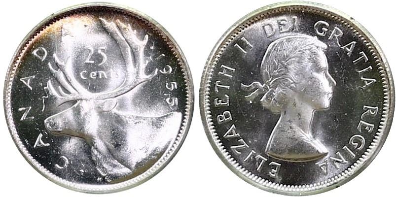 1955 25¢ "Double 1955" CCCS/ICCS Gem Mint State-65.