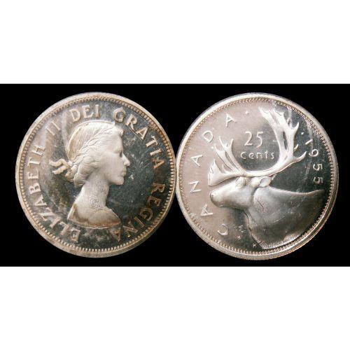 1955 25¢ ICCS PL-65 ULTRA HEAVY CAMEO. BrillianT. Excellent strike with clean fields.
