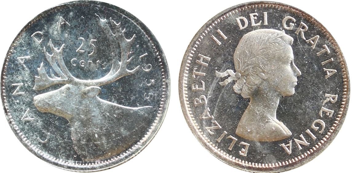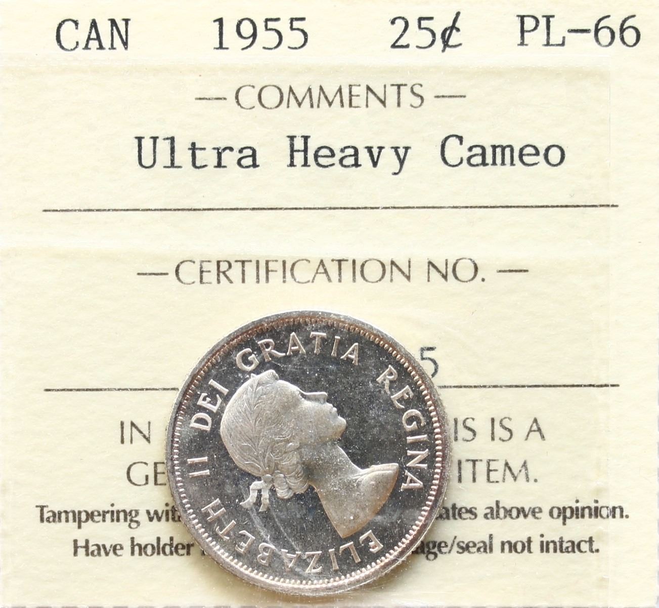 1955 25¢ ICCS Superb Gem Proof-Like-66 Ultra Heavy Cameo. Pristine example with light scattered tones.