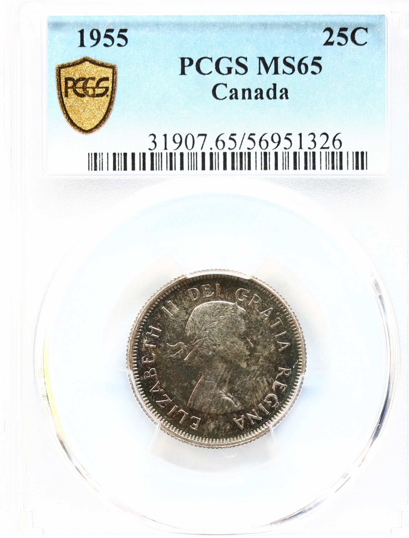 1955 25¢ PCGS Gem Mint State-65. Superbly toned.