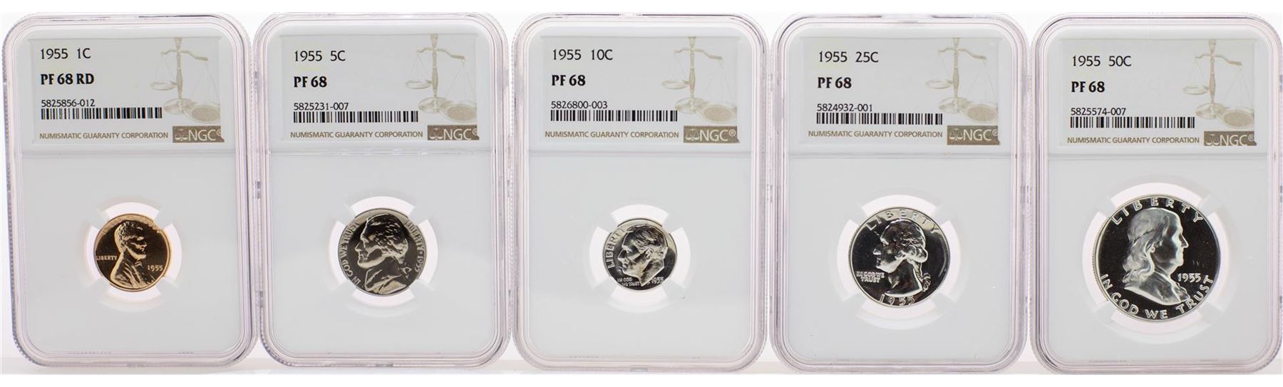 One 1955 (5) Coin Proof Set Graded NGC PF68. NGC Certified.