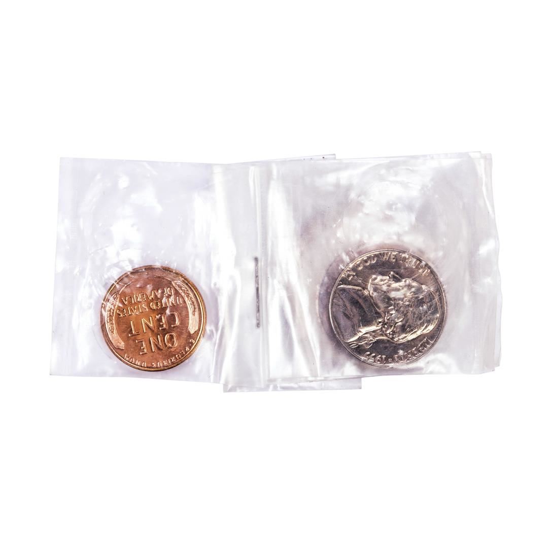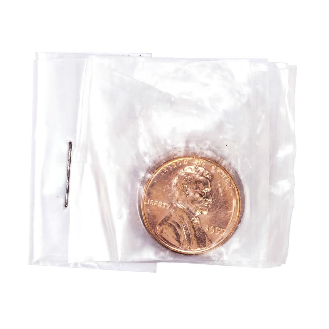 Bidders are advised that certain types of plastic may react with a coin's metal or transfer plasticizer to notes and may cause damage. Caution should be used to avoid storage in materials that are not inert.