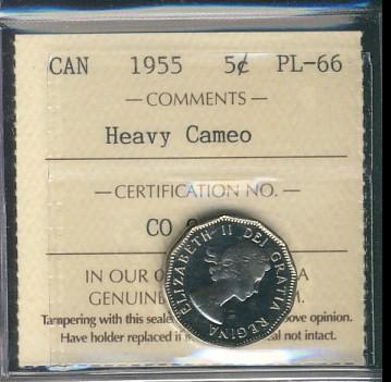 1955 5¢ ICCS PL66 Hvy Cameo.
