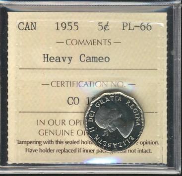 1955 5¢ ICCS PL66 Hvy Cameo.