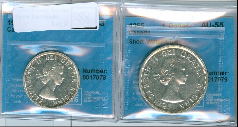 1955 50¢ CCCS MS-63 & Dollar 1955 CCCS AU-55 Short Water Lines. Lot of 2 coins.