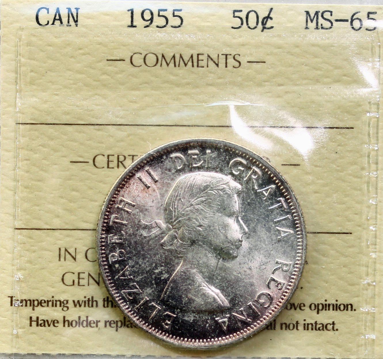 1955 50¢ ICCS Gem Mint State-65. Attractive Gem example displaying attractive tones.