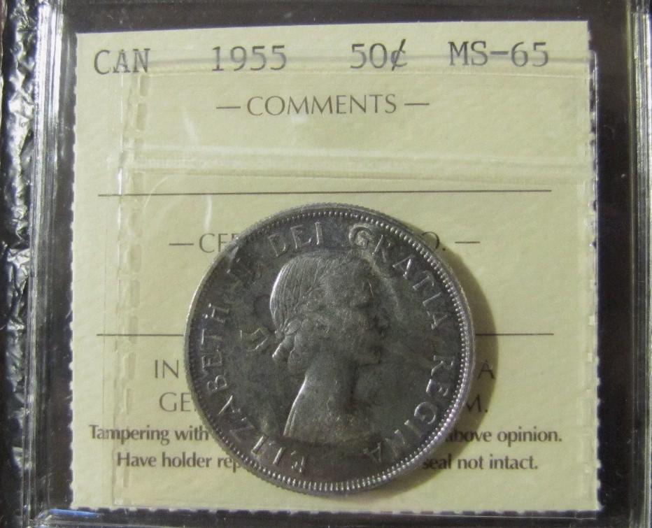 1955 50¢ ICCS MS65. Intense shades of red and golden brown.