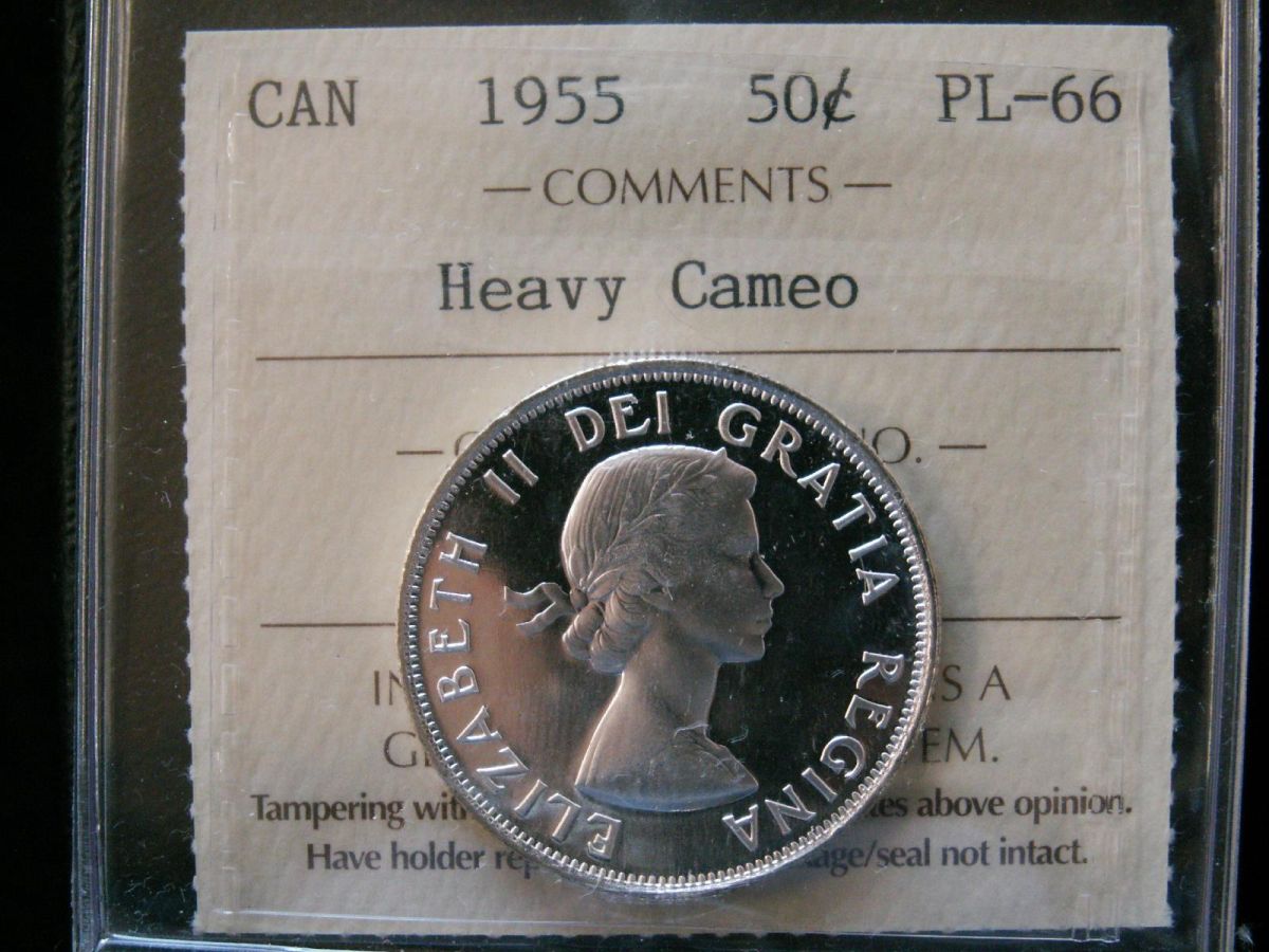 1955 50¢ ICCS PL66 Heavy Cameo. Tied for finest graded.