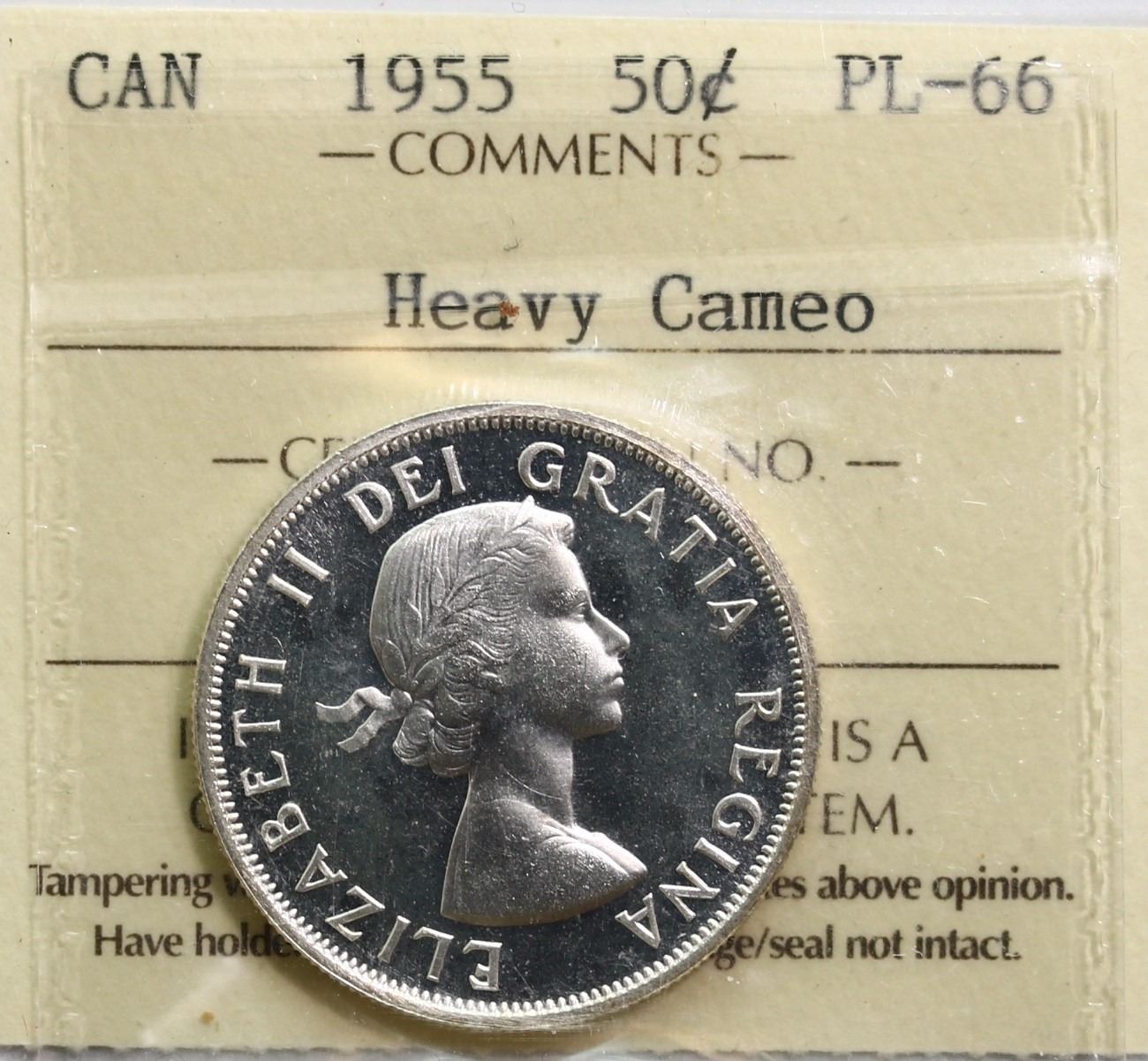 1955 50¢ ICCS Superb Gem Proof-Like-66 Heavy Cameo