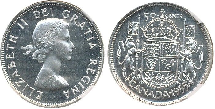 1955 50¢ NGC PL67 Cameo. Pristine full white issue.