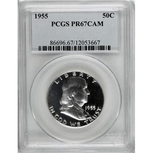 <B>1955 50C PR67 Cameo PCGS.</B></I> . PCGS Population (329/51). NGC Census: (599/321). Numismedia Wsl. Price for NGC/PCGS coin in PR67: $210. (#86696)<BR><BR><b>Shipping:</b> Coins & Currency (<a target="_blank" href="http://www.heritageauctions.com/common/shipping.php">view shipping information</a>)