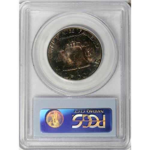 <B>1955 50C MS65 Full Bell Lines PCGS.</B></I> Sharply struck and frosty beneath captivating rose, violet, cerulean, lime, and silver-gray patina. A handful of tiny grazes are noted on the portrait.<BR><I>From The Southern Collection.</B></I><BR><BR><b>Shipping:</b> Coins & Currency (<a target="_blank" href="http://www.heritageauctions.com/common/shipping.php">view shipping information</a>)