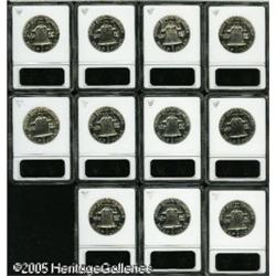 <B>1955 50C PR66 ANACS,</B></I> 11 pieces, all retain most of their original brilliance with many showing light peripheral accents of color. 11 coins Lot:8350
