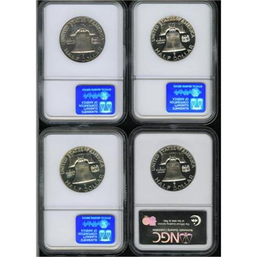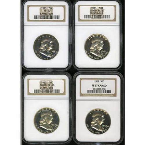 <B>1955 50C PR67 NGC; 1961 PR67 Cameo NGC; 1962 PR66 Cameo NGC; 1962 PR67 Cameo NGC.</B></I><BR><BR><B>Coin Engraver:</B> John R. Sinnock<BR><BR><b>Shipping:</b> Coins & Currency (<a target="_blank" href="http://www.heritageauctions.com/common/shipping.php">view shipping information</a>\)