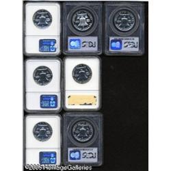 <B>1955 50C PR67 PCGS; 1956 Type Two PR67 PCGS; 1957 PR68 PCGS; 1959 PR68 NGC; 1960 PR68 NGC; 1961 PR68 NGC;</B></I> and a <B>1962 PR68 NGC,</B></I> all are bright and highly reflective as issued. A worthwhile partial set of proof Halves from the 50s and 60s.<BR><I>From The Mike Jacobson Collection.</B></I> 7 Coins Lot:8339