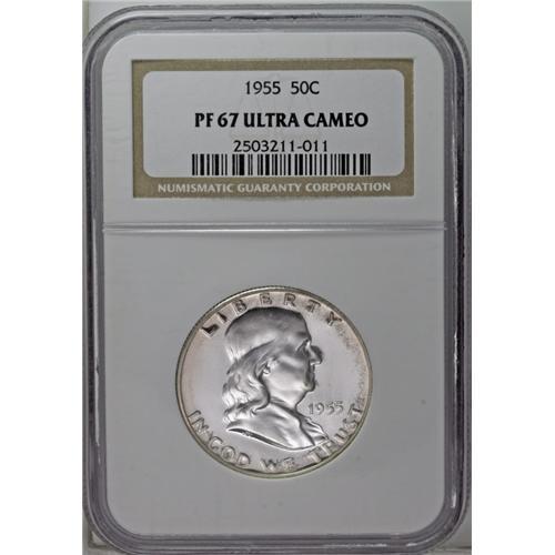 1955 50C PR67 Ultra Cameo NGC. A sharply struck Superb