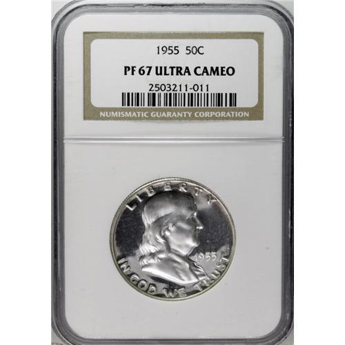 1955 50C PR67 Ultra Cameo NGC. A sharply struck Superb