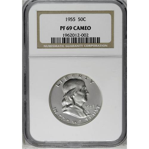 1955 50C PR69 Cameo NGC. A gorgeous, fully brilliant F 1955